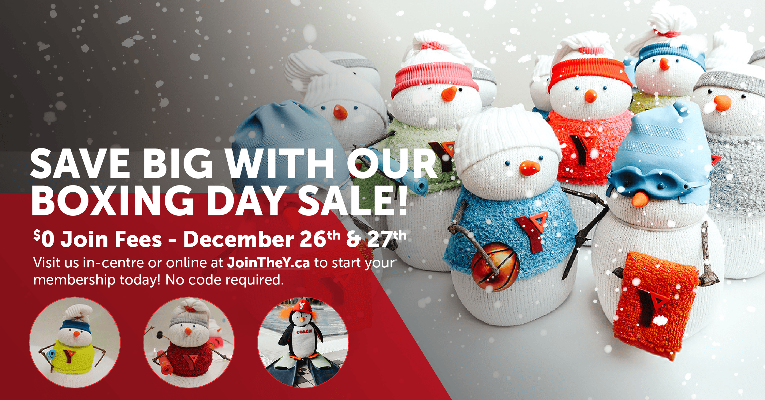 Looking to start your New Year’s fitness resolution early? Take advantage of our Boxing Day sale, available for two days only! From December 26-27, new members can save the Join Fee with the purchase of any YMCA membership – that’s a savings of $75!